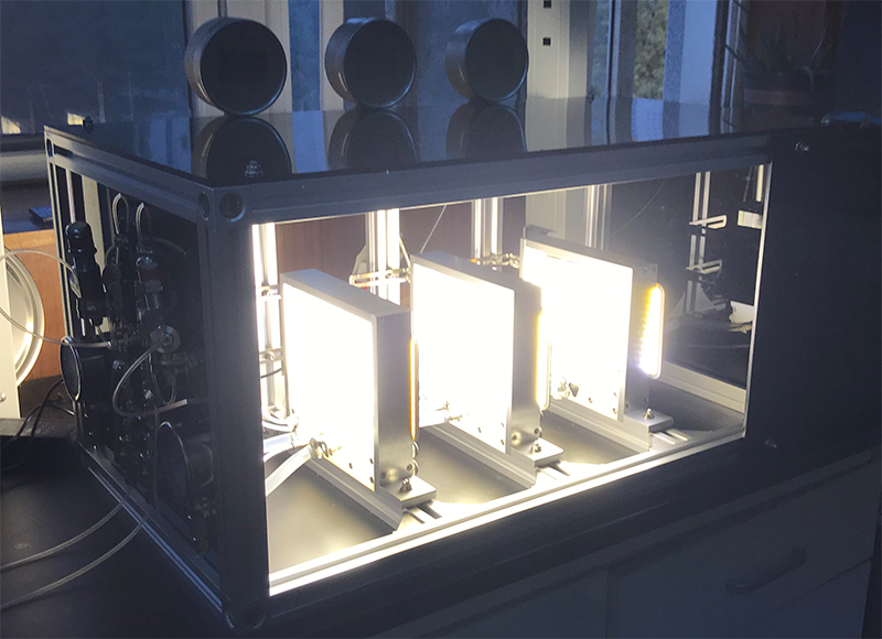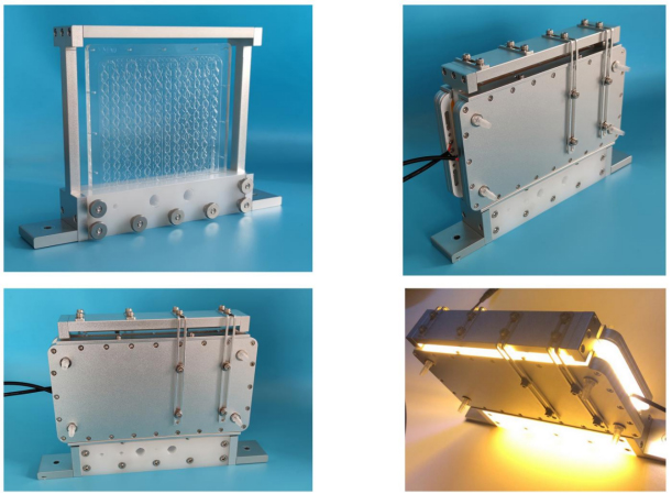 提供功率可調各個波段LED陣列面光源,如285nm、295nm、310nm、365nm、395nm、405-425nm、450-475nm(藍光)、520-550nm(綠光)、4000K、6000K等 | 獨有的“工字形”夾具設計方便光源拆裝和固定,同時縮短光源與反應物距離,減少光衰減損耗提高反應效率 |